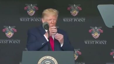 La dificultad de Donald Trump para sujetar un vaso de agua y caminar dispara los rumores sobre su estado de salud