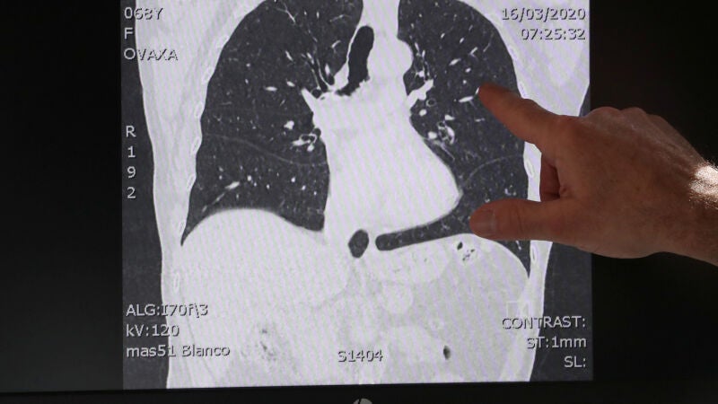 En las imágenes se muestran los efectos de la neumonía que provoca este nuevo coronavirus y que se ha convertido en la peor consecuencia de la infección. Para el 80% de la población la enfermedad cursa con síntomas leves pero hay quien tienen que ser ingresado o, en un menor porcentaje, pasar por una Unidad de Cuidados Intensivos.