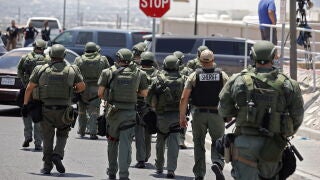 Diversos agentes de seguridad llegaban por tierra y aire tras ser informados del tiroteo producido este sábado en un centro comercial en El Paso, próximo a la frontera con México, momento que ha recogido el periodista Juanma Soynadie.