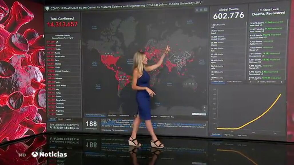En las últimas veinticuatro horas se han infectado de coronavirus 259.848 personas y la curva mundial ya se acerca a los 14,5 millones de contagios. Las muertes, por su parte, superan las 600.000.
