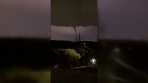 Las impactantes imágenes muestran el momento en el que el tornado queda iluminado por los relámpagos mientras los truenos retumbaban en la distancia.