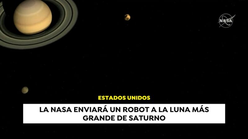La NASA anuncia que enviará un robot espacial a la luna más grande de Saturno, Titán, que comparte muchas características con la Tierra y que podría esconder los secretos del origen de la vida en nuestro planeta. Enviará a su robot espacial Dragonfly (Libélula en inglés) en 2026, y varios años después, en 2034, se espera que la nave aterrice en la superficie helada de Titán.