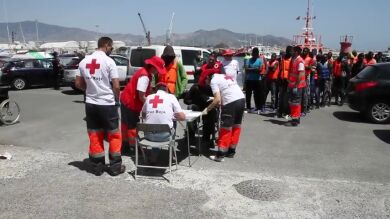 Allí han recibido una primera atención sanitaria y alimenticia. La 'Salvamar Hamal' ha sido la encargada de realizar el rescate de las 87 personas de dos pateras tras recibir el aviso de un buque que estaba por la zona. Tras ser atendidos por la Cruz Roja, han sido puestos a disposición de la Policía Nacional en el centro de acogida temporal existente en el puerto.