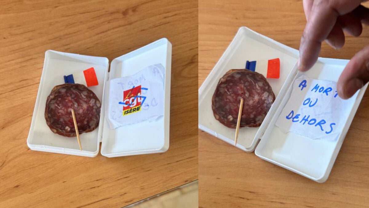 Según la CGT, los hechos ocurrieron a principios de la semana pasada. Al llegar a su puesto de trabajo, el conductor encontró en su casilla de correo un paquete. En su interior había varias lonchas de embutido sujetas con una pequeña bandera francesa, junto con una esvástica y un mensaje con una amenaza de muerte: "Fuera o muerte".