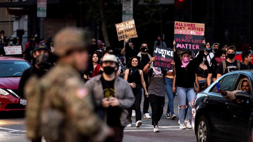 Sin embargo, las acciones violentas se han sucedido al tiempo que en calles cercanas cientos de manifestantes protestaban pacíficamente, con minutos de silencio en honor George Floyd.