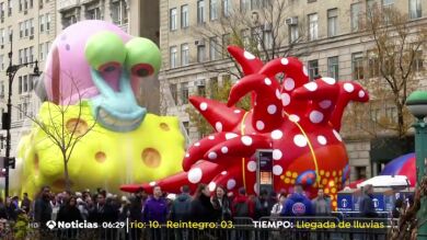 Como cada año, se celebra el conocidísimo desfile de 'Macy´s' en las calles de Nueva York por el Día de Acción de Gracias. Los globos gigantes, una de las grandes atracciones del desfile, podrían no volar por la alerta de grandes rachas de viento.