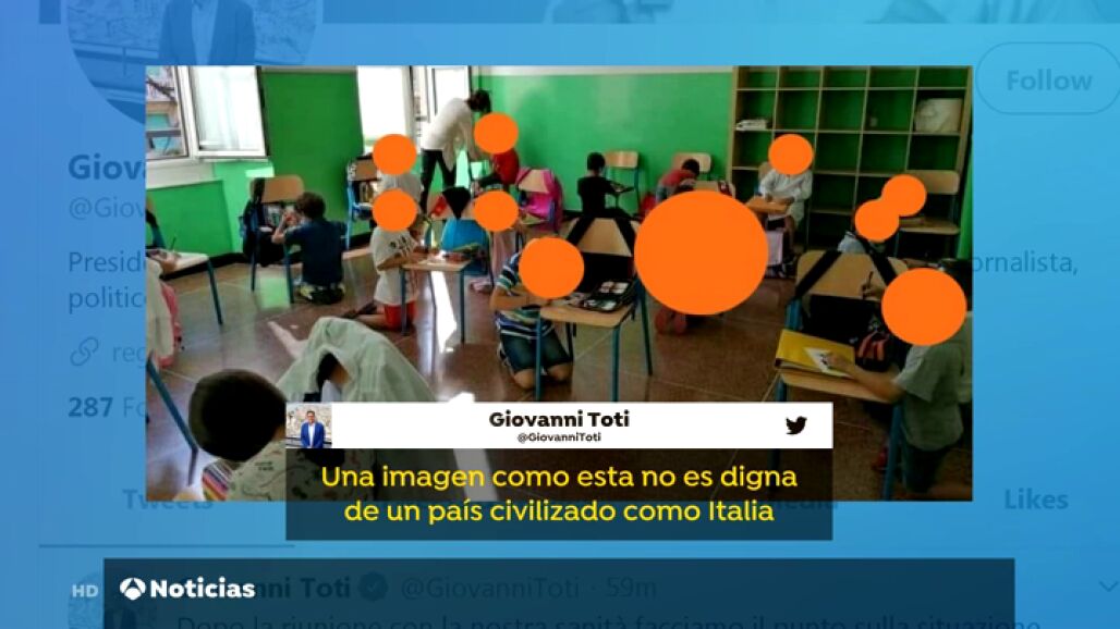 "Una imagen como esta no es digna de un país civilizado como Italia", denunciaban en Twitter ante la falta de pupitres en un colegio de una región Italiana.