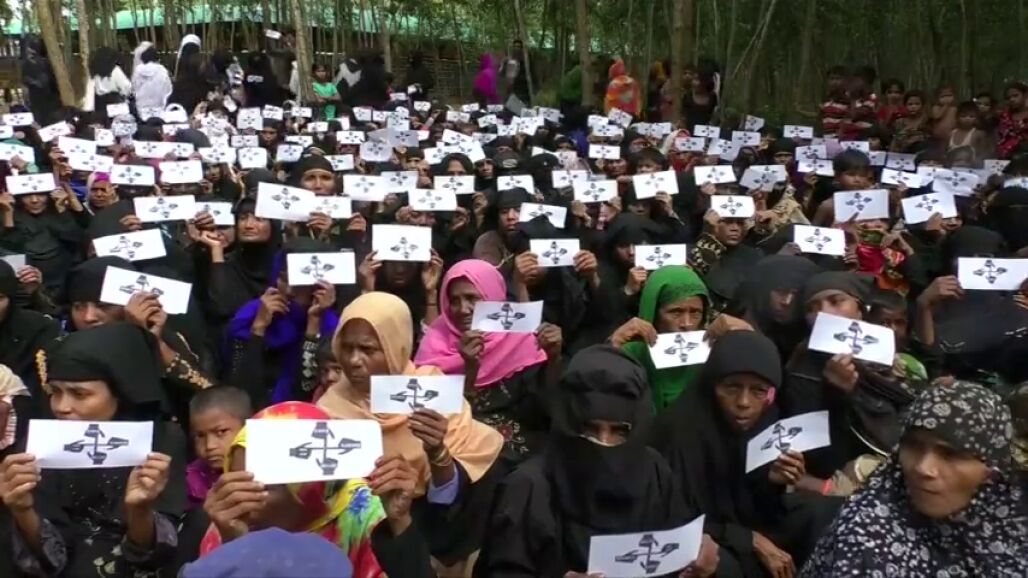 Cientos de hombres rohingya clamaron por "justicia" a través de los campamentos, mientras que las mujeres se reunieron bajo una pancarta que decía "365 días de llanto ... ahora estoy enfadado", exigiendo sus derechos como ciudadana de Myanmar.