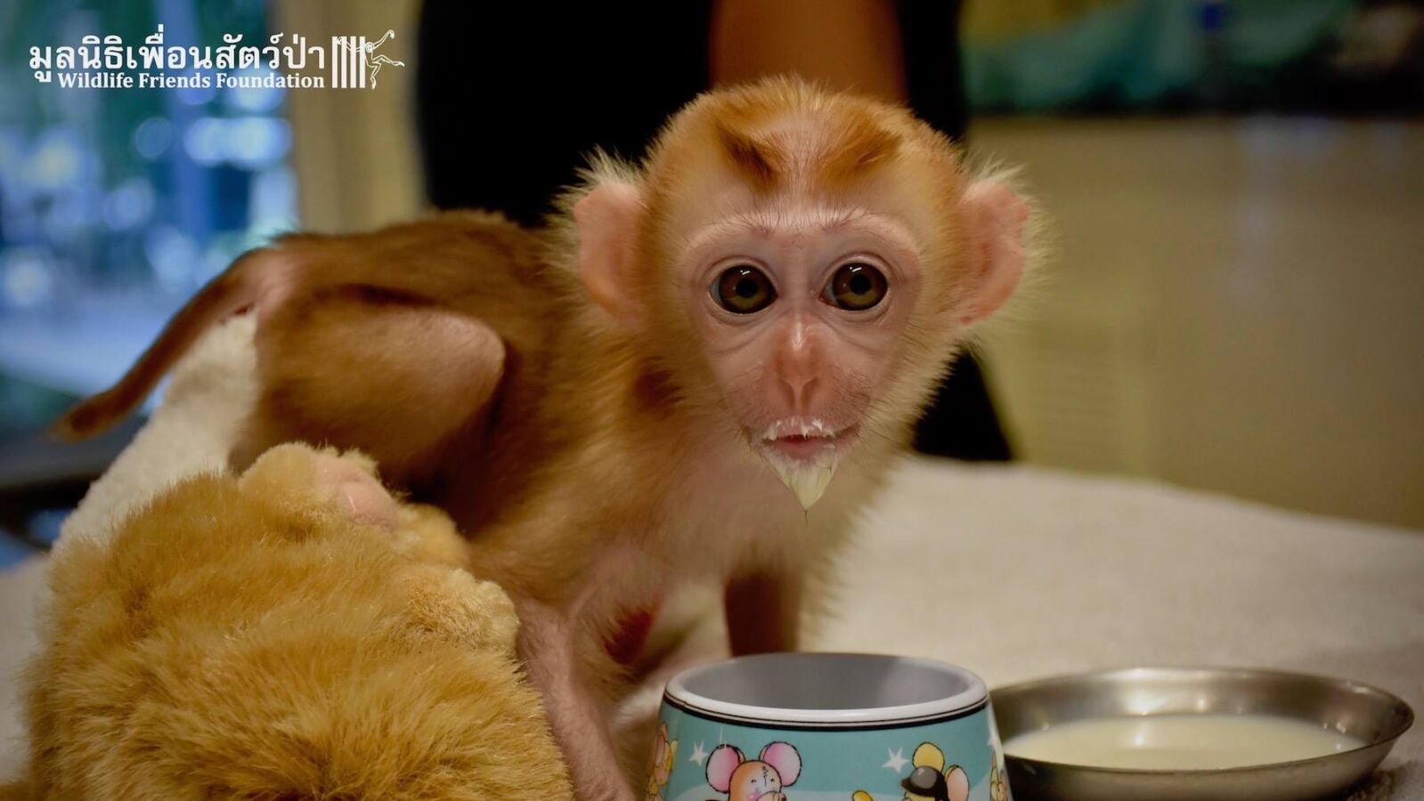 La fundación Wildlife Friends Fundation rescató a un macaco de dos meses después de que un cazador lo vendiera como mascota en el mercado negro. Mongkood, que es como han llamado al animal, todavía sufre la pérdida de su madre, que murió a manos del cazador, y se ha aferrado a dos peluches en su ausencia.