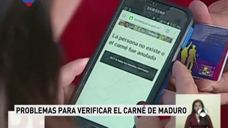 Nicolás Maduro quiso verificar su voto con el 'carné de la patria', un documento de control social que puso en marcha hace un año y que sirve, entre otras cosas, para saber quién ha votado y quién no. El presidente venezolano citó a la prensa para presumir de ese carné pero el sistema no lo reconoció como válido. "La persona no existe o el carné fue anulado", podía leerse en la pantalla de la máquina que debe verificar la validez del documento.