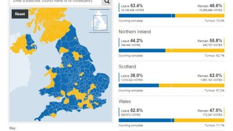 El mapa del brexit: así quedaron los resultados