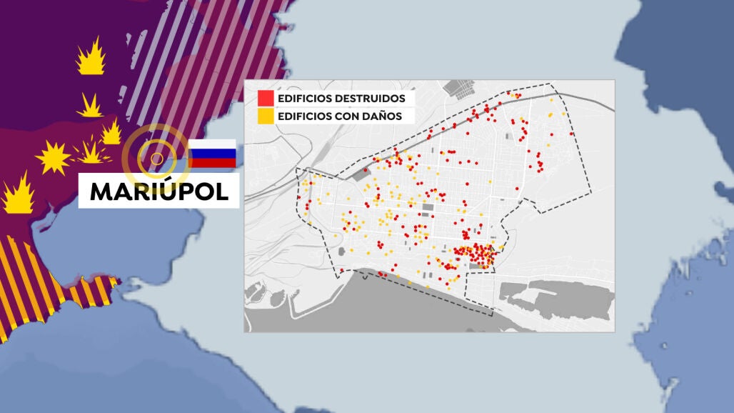 El mapa de los edificios destruidos y dañados en Mariúpol, Ucrania