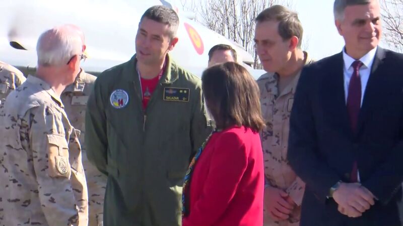 Margarita Robles vive en directo una alerta de los pilotos españoles en plena visita a Bulgaria