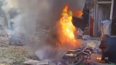 Entre una espesa nube de humo los equipos de emergencia, ayudados por los vecinos, han intentado rescatar a algunas de las víctimas. En las últimas horas once personas han muerto y cerca de 30 han resultado heridas por varios bombardeos en el país.