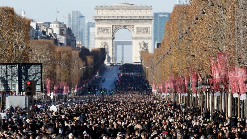 Más de un millón de personas, según estimaciones de la Prefectura de París, se han congregado este sábado a lo largo de los Campos Elíseos de la capital francesa para dar su último adiós al cantante Johnny Hallyday, leyenda nacional del rock, fallecido el miércoles a los 74 años de edad.