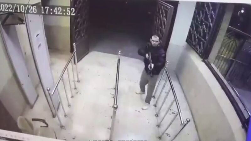 El atentado en un santuario de Irán deja una surrealista imagen del autor del ataque, entrando armado con un fusil y disparando a quemarropa hasta que se le queda encasquillada.