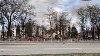 "Las tropas rusas han destruido de manera cínica y deliberada el Teatro Dramático en el corazón de Mariupol. El avión ha lanzado una bomba sobre un edificio en el que se escondían cientos de residentes pacíficos", dijo el Ayuntamiento de la ciudad en su canal de Telegram el mismo día del ataque.