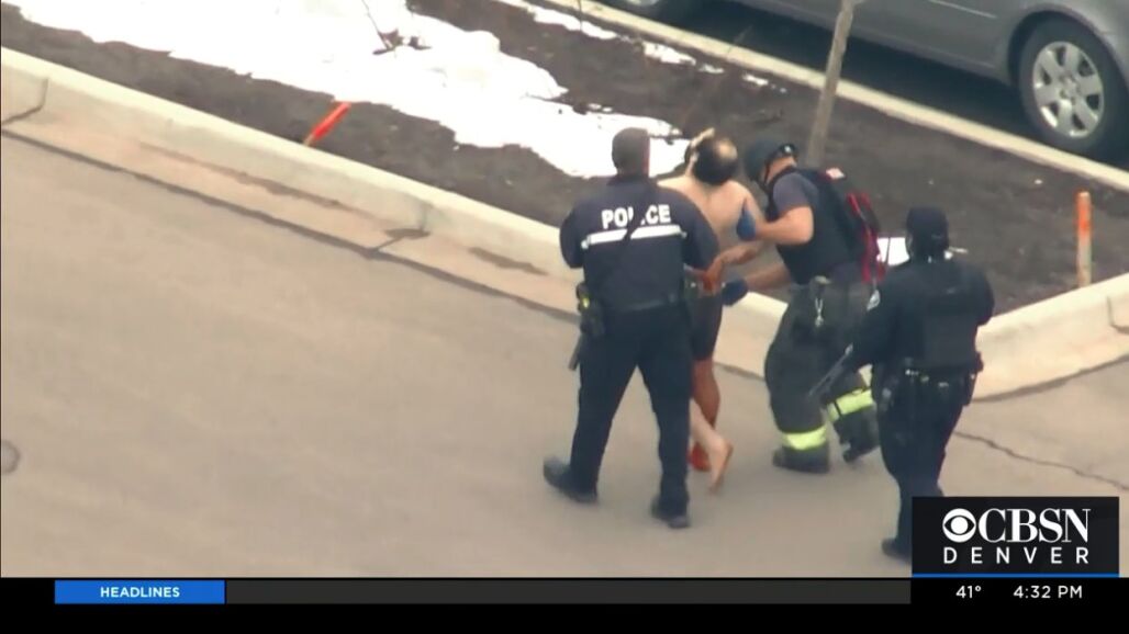 Por su parte, el fiscal del distrito del condado de Boulder, Michael Dougherty, informó de la detención del presunto atacante, que resultó herido. Aunque Dougherty no aportó detalles personales sobre el presunto atacante, imágenes de televisión a lo largo de la tarde habían mostrado a dos policías escoltando a un detenido que iba esposado, en ropa interior y con la pierna ensangrentada.