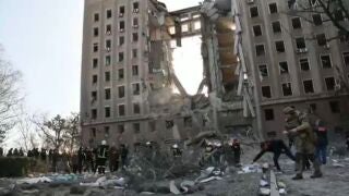 En el bombardeo de Mikolaiv "por parte de los invasores rusos, uno de los proyectiles alcanzó el edificio administrativo de nueve pisos de la administración regional", ha confirmado el SES. "Hubo una destrucción de la parte central del edificio desde el noveno hasta el primer piso, aunque no se produjo un incendio".