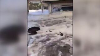 El suceso fue grabado por personas que se encontraban en la zona. En las imágenes se escucha a la gente en un primer momento maravillada por la grandeza de la ola. Sin embargo, lo que parecía ser un espectáculo natural terminó en tragedia. En cuestión de segundos la ola entró con violencia al restaurante.