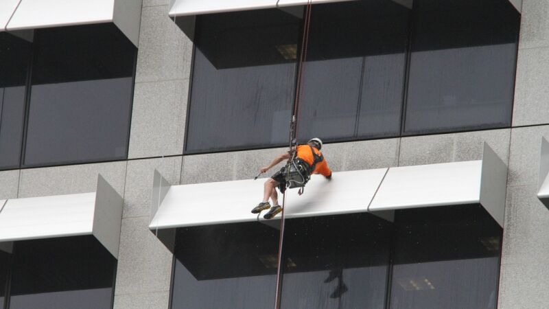 Incluso tomando todas las medidas de seguridad posibles, hay trabajos que son peligrosos. A priori limpiar cristales no estaría catalogado como profesión de riesgo, sin embargo si esa actividad se realiza a varios metros de altura la cosa cambia.