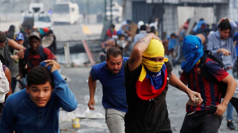 Así las cosas, Guaidó y López han abandonado la marcha por Caracas, pidiendo a los venezolanos que no dejen las calles hasta que Maduro haya caído. En respuesta, miles de venezolanos han mantenido las protestas, ya a modo de concentración, en Caracas y otras ciudades.
