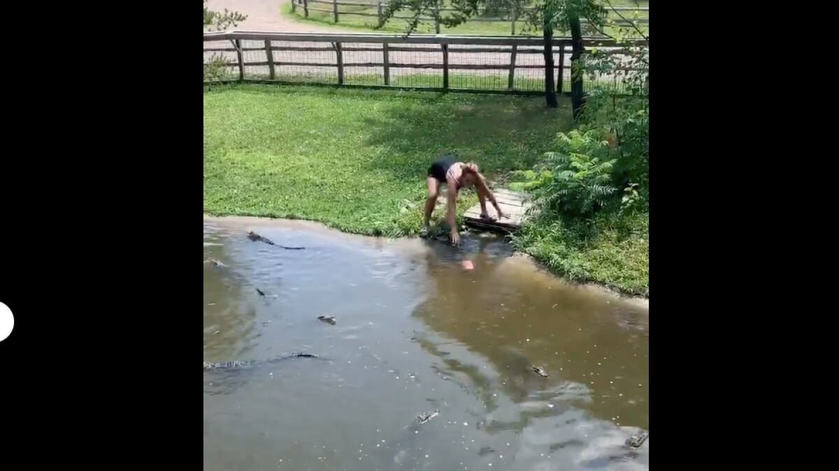 Una mujer se cuela junto a su hijo en un estanque lleno de cocodrilos para coger su cartera en un zoo de Minnesota