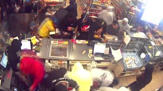 Al menos un hombre tomó artículos de los estantes y se los arrojó al empleado de la tienda, quien trató de esconderse y no intervino. "Él, por alguna razón, decidió comenzar a arrojar patatas fritas, plátanos y cosas al trabajador, que básicamente estaba escondido en la esquina. No peleó, no mostró resistencia a lo que estaba sucediendo", dijo a los periodistas el detective de policía, Ryan Moreno.