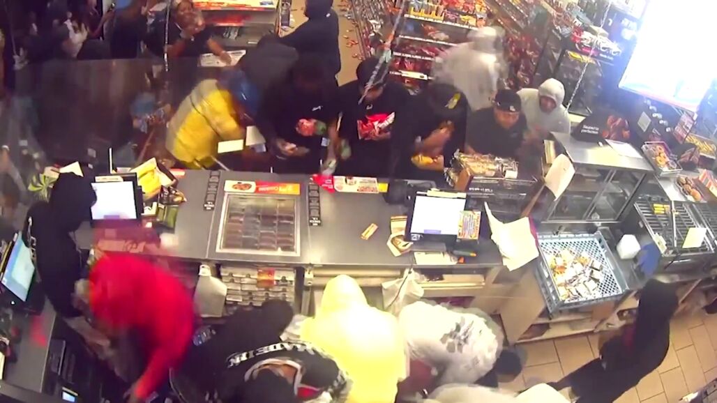 Autoridades angelinas han publicado el vídeo de la cámara de seguridad del supermercado con el fin de atrapar a los asaltantes. Ofrecen una recompensa de 50.000 dólares a todo aquel que aporte pistas para identificar a los ladrones. En las imágenes se aprecia cómo entran en manada y arrasan con todo, agrediendo al trabajador.