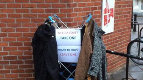 Fay Sibley, una mujer de Reino Unido, ha instalado un perchero delante de la biblioteca pública para que quienes lo deseen, puedan dejar un abrigo o ropa de invierno con el fin de las personas sin hogar y sin recursos cojan lo que necesiten. Tras compartir en Facebook la iniciativa, decenas de personas se acercaron para ayudar y ese mismo día había cerca de 40 abrigos.