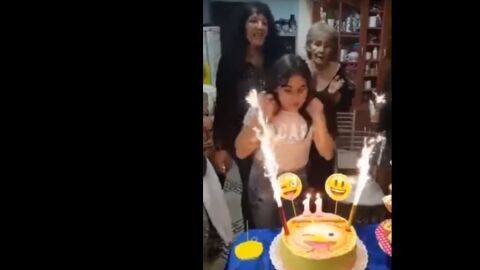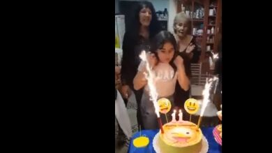 La pequeña, de 11 años, sopla las velas mientras sus familiares y amigos le cantan el 'Cumpleaños feliz'. Una vez apagadas, quedan en la tarta dos bengalas encendidas y uno de los invitados a la fiesta rocía a la niña con un spray de serpentina, lo que provoca que salga ardiendo.