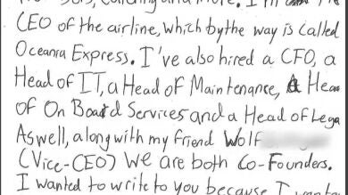Un niño de 10 años escribe una carta a un aerolínea pidiendo consejo para fundar la suya y le contestan