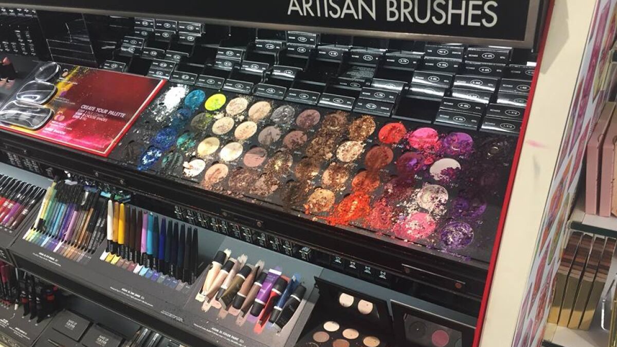 Una maquilladora de una tienda de cosméticos de Georgia ha captado las fotografías que muestran los daños provocados por un niño en las sombras de ojos. Brittany Nelson ha publicado en su página de Facebook las fotografías que demuestran los daños, que ascienden a 1.300 dólares (1.106 euros).