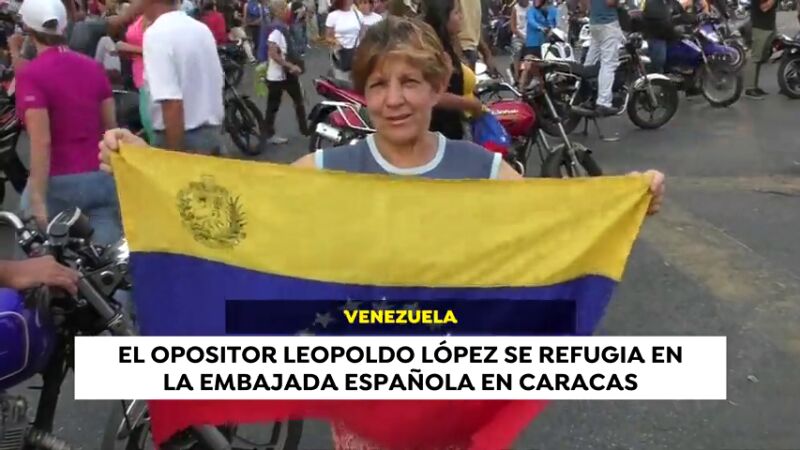 El opositor venezolano ha abandonado la embajada chilena esta madrugada con su mujer y su bebé de 15 meses para encontrar asilo en la embajada de España de la capital. El ministro chileno de Exteriores ha explicado en su cuenta de Twitter que se trata de una decisión personal de Leopoldo y su esposa. Por otro lado, se desconoce el paradero de Guaidó. En un vídeo difundido esta madrugada pedía al pueblo venezolano la movilización durante la jornada de hoy en las calles. Maduro hacía lo propio en otro vídeo institucional.
