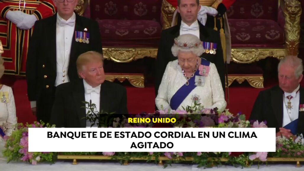Las mujeres, las principales invitadas, fueron de blanco, salvo la aún primera ministra Theresa May, que lució un vestido negro. Donald Trump definió a la Reina de Inglaterra durante su discurso como una "gran mujer". Fue una cena cordial que no pudo sin embargo, vestir el clima de agitación de esta visita tras los insultos de Trump al alcalde de Londres y otras polémicas declaraciones.