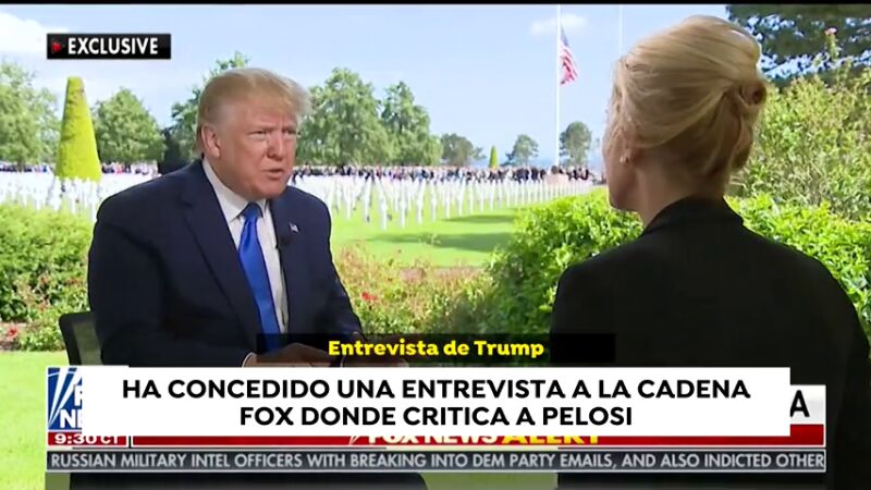 El presidente estadounidense ha concedido una entrevista a su cadena de noticias favorita. En ella critica a la portavoz de la Cámara de Representantes, Nancy Pelosi, que ha dicho que le gustaría ver al presidente en la cárcel. Trump asegura que ha hecho mal en hacer esas declaraciones cuando él estaba en Europa y que le parece una persona terrible y un "manojo de nervios".