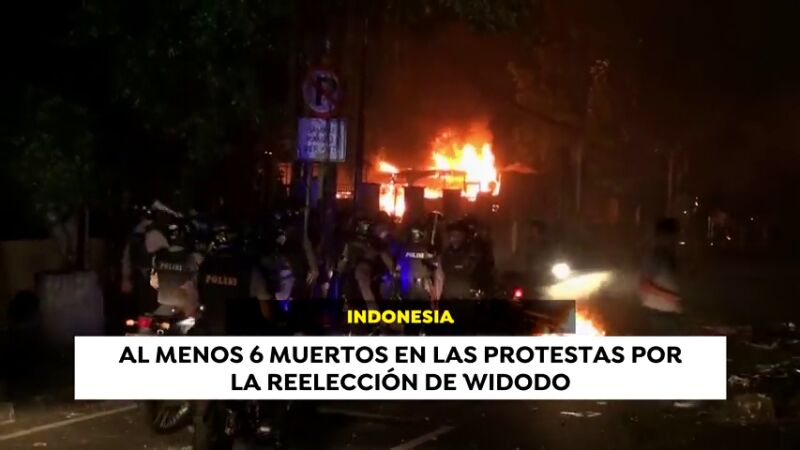 Al menos 6 muertos y decenas de heridos durante las protestas tras publicarse los resultados de las últimas elecciones y confirmarse la reelección del presidente Widodo. La policía ha detenido a varias personas y ha lanzado cañones de agua y gases lacrimógenos a los manifestantes.