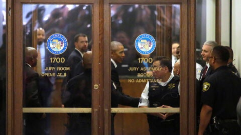 El expresidente de EEUU Barack Obama se presentó para servir como jurado en la corte del condado de Cook, en medio de un gran revuelo de periodistas, agentes secretos y curiosos, pero no fue tenido en cuenta y se retiró en medio de vítores y aplausos. "Sus servicios no fueron necesarios y el presidente quedó en libertad a la hora del almuerzo", informó a los periodistas el magistrado jefe de la corte, Timothy Evans, quien había recibido y escoltado a Obama hasta la sala de jurados del piso 17 del Daley Center, en el centro de Chicago.
