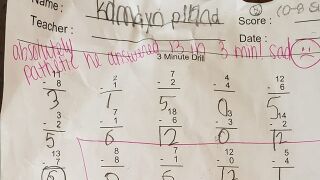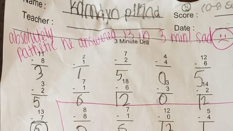 Uno de los menores, Kamdyn, de 7 años, consiguió responder 13 preguntas. Al ver el resultado, Rupp Bohenek, escribió una nota en su tarea: "Absolutamente patético, respondió 13 en 3 minutos. Triste".