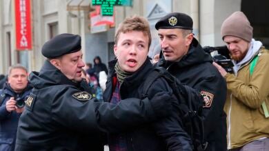 El padre del periodista detenido por Bielorrusia denuncia que su hijo ha sido coaccionado y agredido: "No son sus palabras"