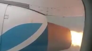 Una pasajera graba el motor ardiendo del avión en el que viajaba