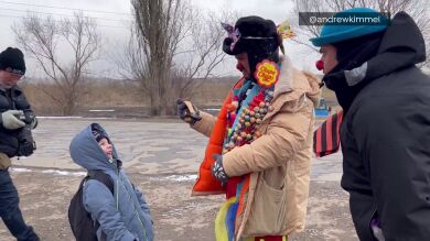 Presos del pánico, muchos niños huyen del horror de la guerra en Ucrania. Sin embargo, en la frontera les esperan unos simpáticos payasos que tratan de endulzarles su delicada situación.