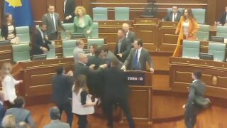 Pelea multitudinaria en el parlamento de Kosovo: de tirarse agua a los golpes