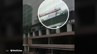 Un limpiacristales en Canadá ha sufrido un susto de muerte. Mientras trabajaba, la plataforma en la que se encontraba se ha desplomado y ha empezado a moverse bruscamente de un lado a otro.