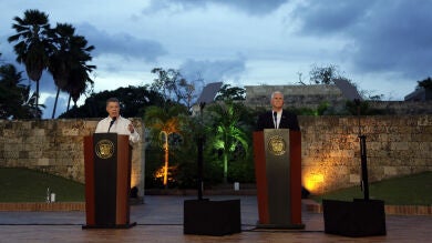 Por su parte, el presidente colombiano ha pedido a Pence descartar una intervención militar en Venezuela. Así, el mandatario ha añadido que seguirán trabajando "unidos como socios estratégicos y sobre todo como amigos". Además, ha sostenido que condenan y rechazan lo que está sucediendo en Venezuela, pues "una constituyente ilegal es el tiro de gracia" ha asegurado.