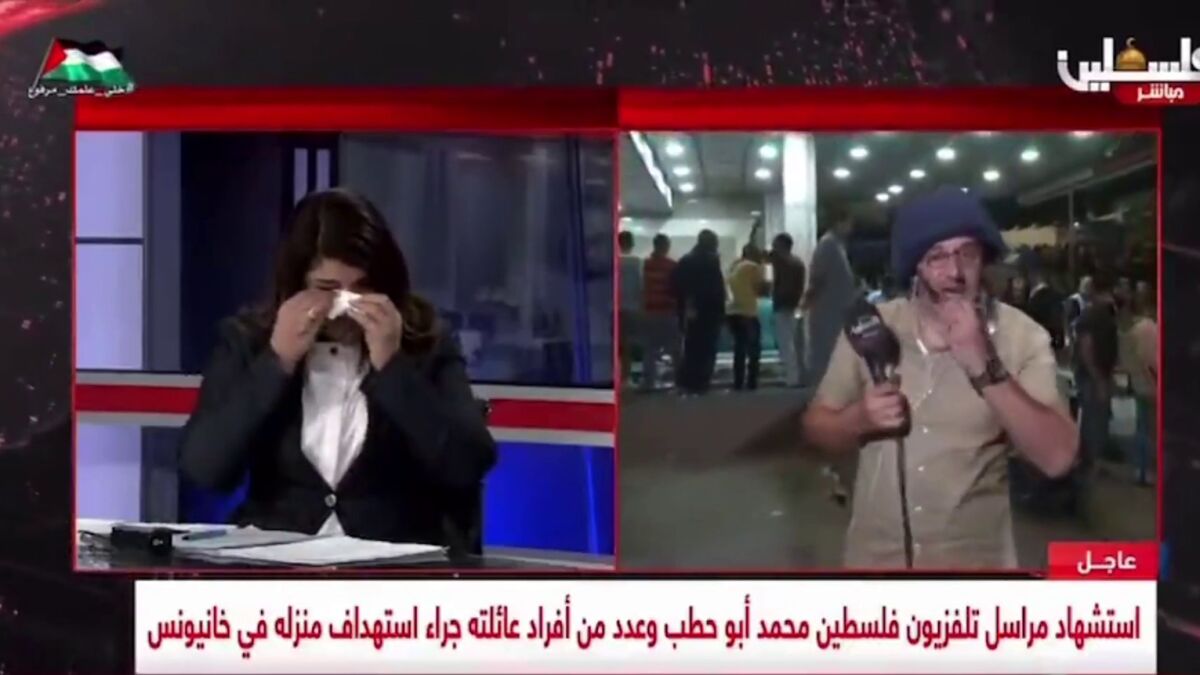 Una bomba mata a un periodista palestino y a su familia y sus compañeros se derrumban en directo