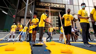 Pintan el eslogan 'Black Lives Matter' sobre la calzada frente a la Torre Trump de Nueva York