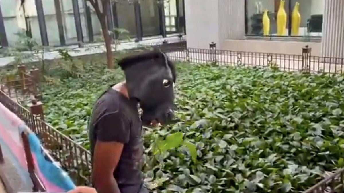 Él mismo relató que se había sentido "discriminado" durante toda su vida, porque desde niño se siente y actúa como un animal. Justamente el joven llevaba puesta una máscara de caballo y se acercó a las plantas del Congreso para simular que estaba comiendo hojas, además, imitó el famoso relincho de los caballos.