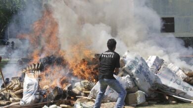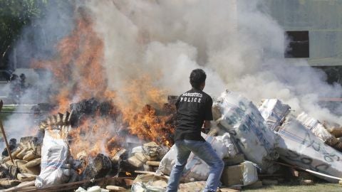 La Policía droga a un pueblo de Indonesia al quemar tres toneladas de marihuana