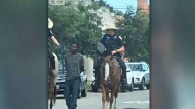 Una foto difundida por vecinos de una localidad de Texas ha levantado ampollas en Estados Unidos. En la imagen se puede ver como dos policías montados a caballo llevan a un hombre negro detenido y atado con cuerdas.